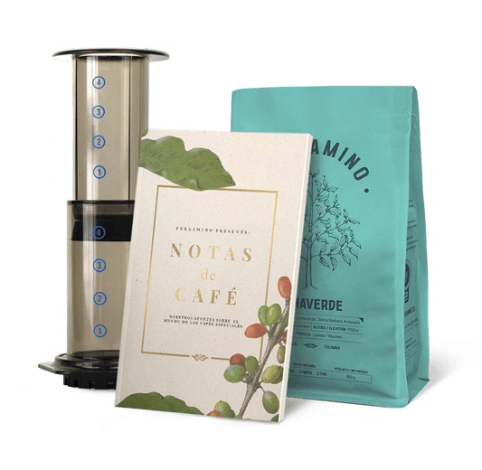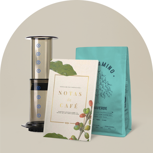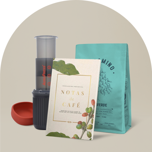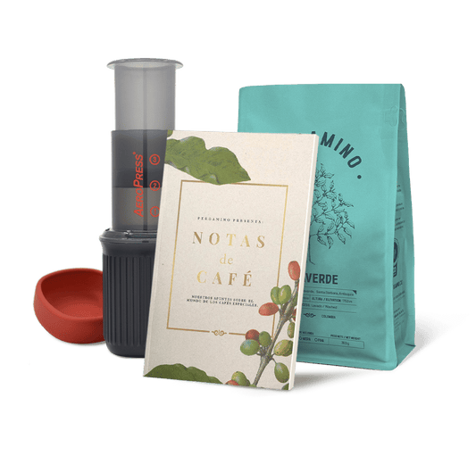 Kit Pergamino 360g + AeroPress Viajera + Libro Notas de CaféPrecio habitual Desde $356.900Precio habitualPrecio unitario por-