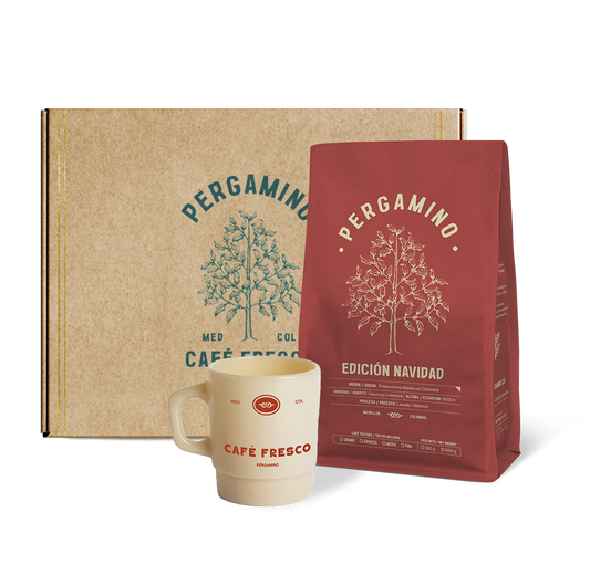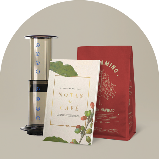 Kit Pergamino Navidad 360g + AeroPress Viajera + Libro Notas de Café