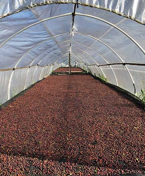 2. En vez de fermentar en un tanque, el café pasa directamente al secado. La fermentación es más agresiva al ocurrir durante el secado. Esto resulta en una taza final con notas de frutas maduras.