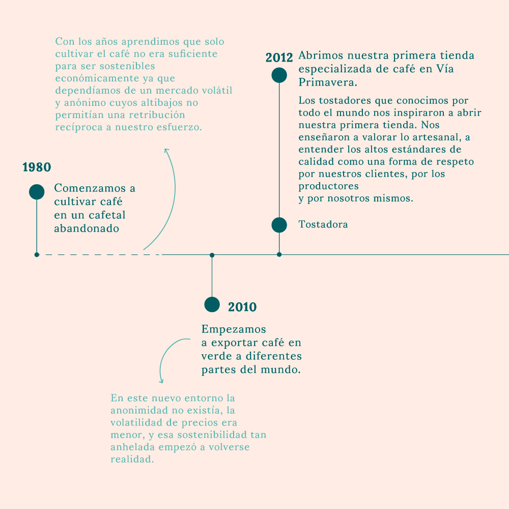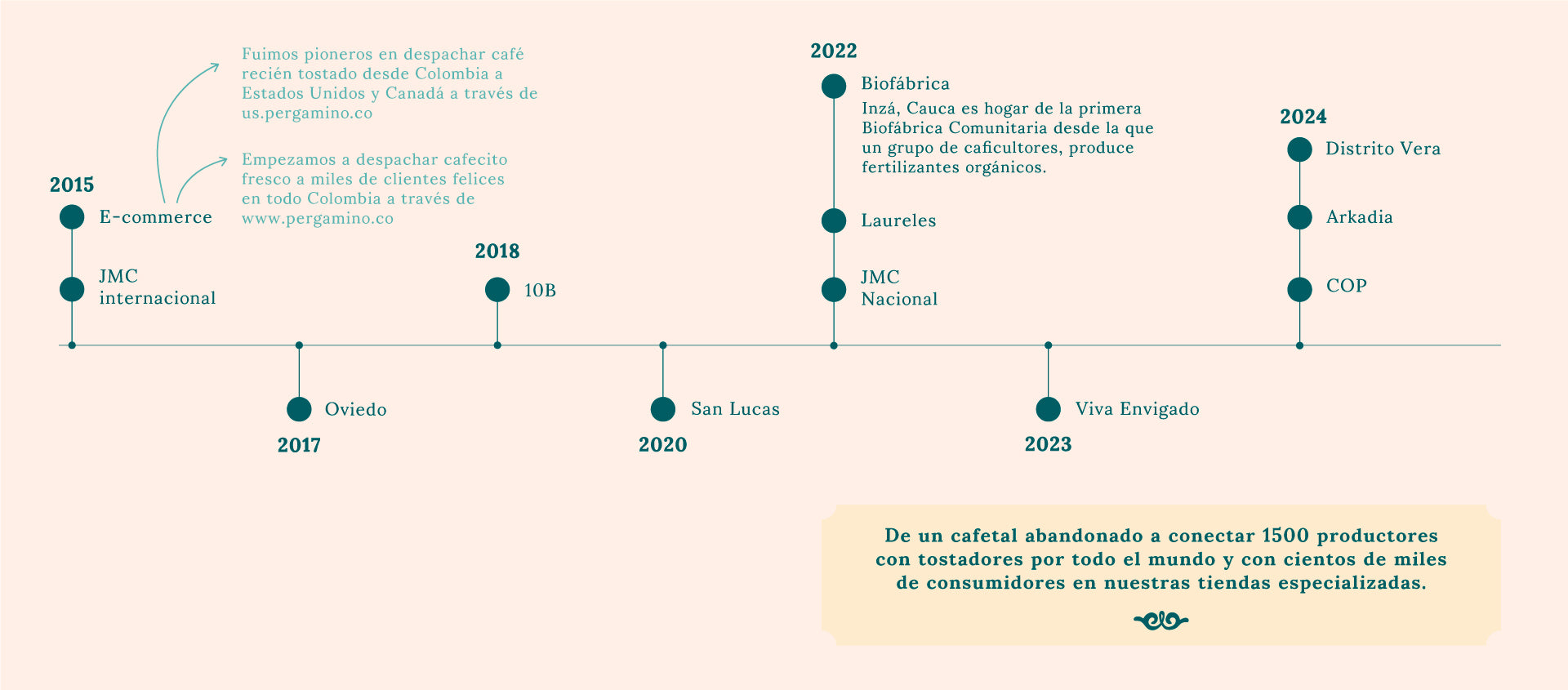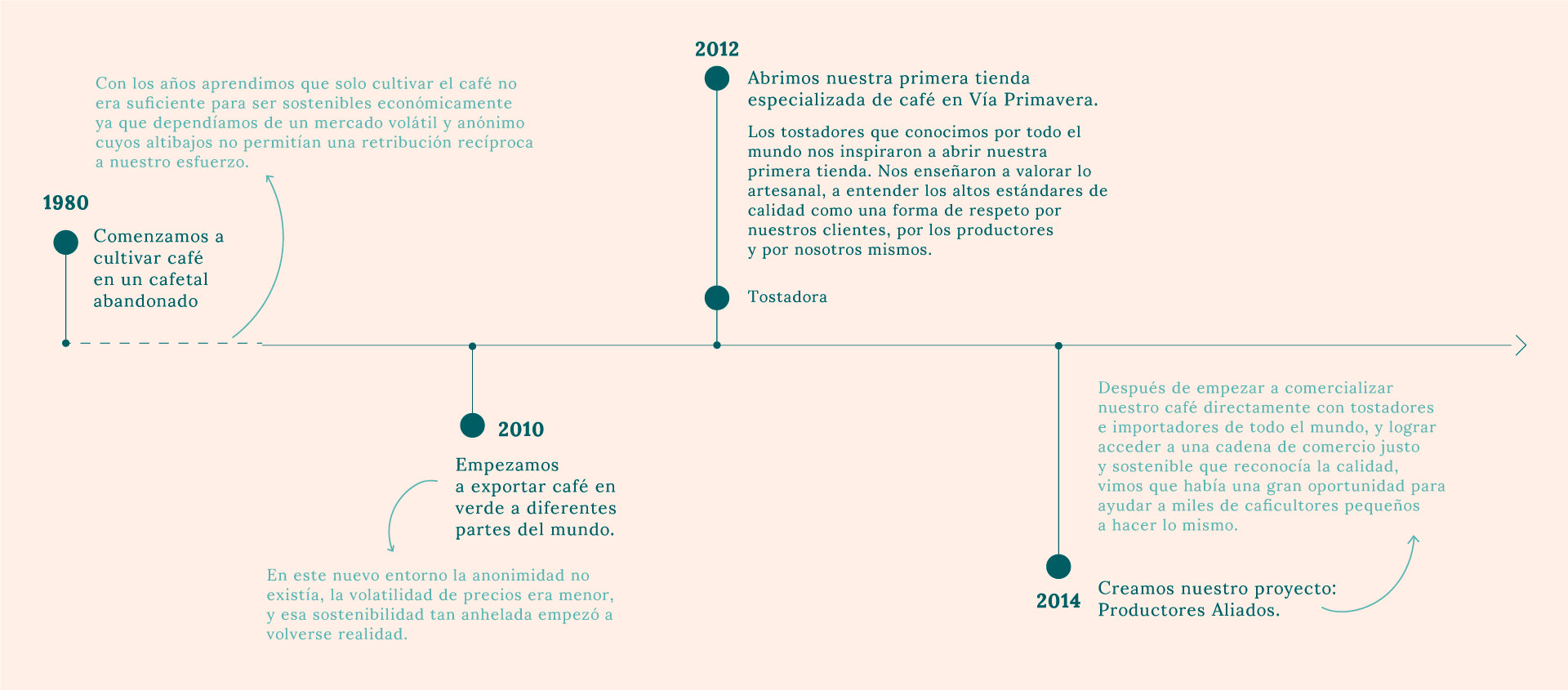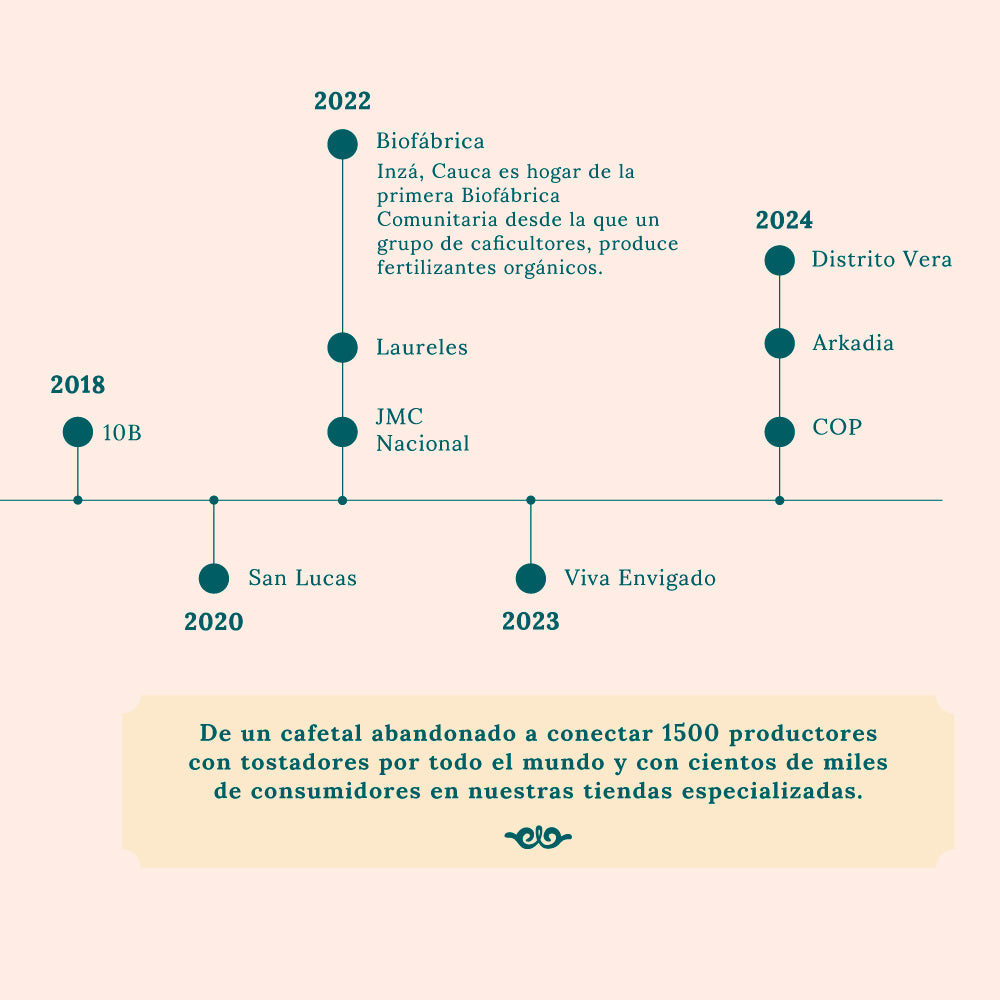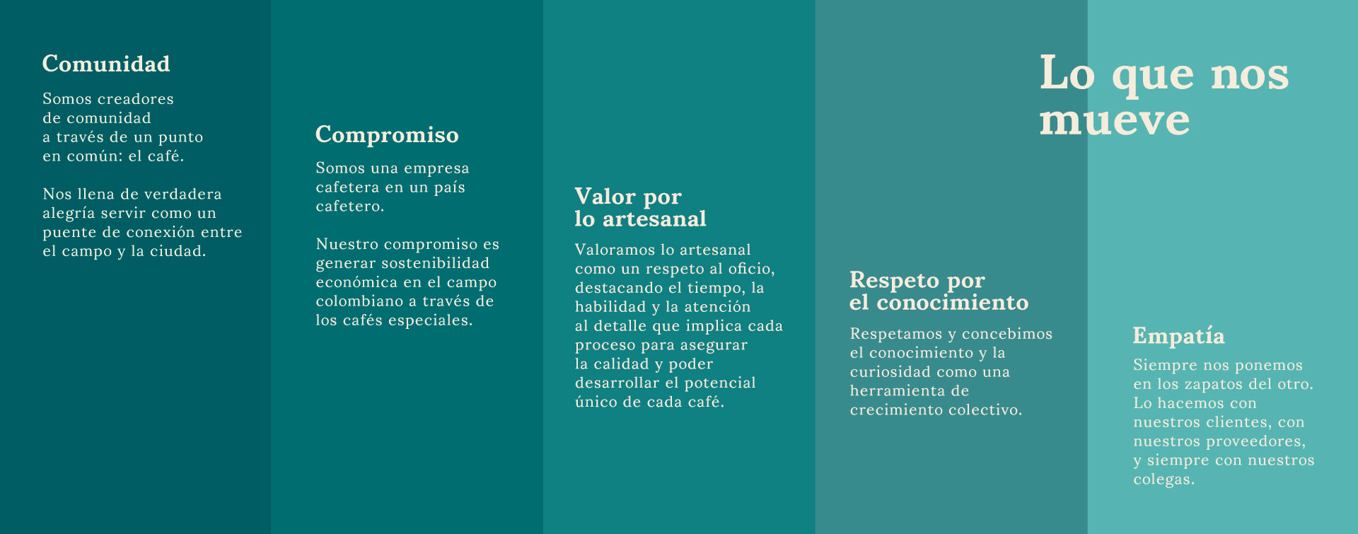 Producimos, tostamos y servimos los cafés de más alta calidad en Colombia. Además, trabajamos de la mano de más de 1.500 productores aliados por todo el país. La mayoría de estos cafés los exportamos en verde a diferentes partes del mundo, y contrario a lo que pasa normalmente en Colombia, algunos de los mejores lotes no los exportamos, sino que los tostamos y servimos en nuestras tiendas especializadas de café en Medellín, o los despachamos a través de nuestro e-commerce a todo Colombia, Estados Unidos y Canadá.