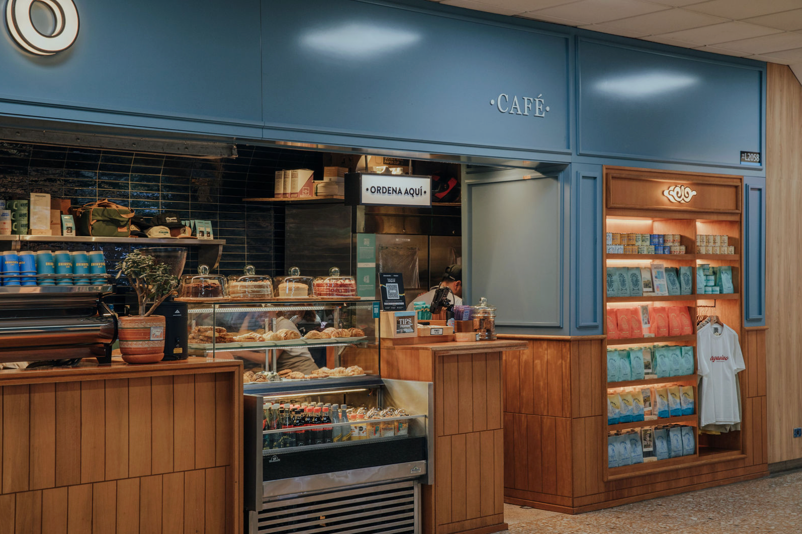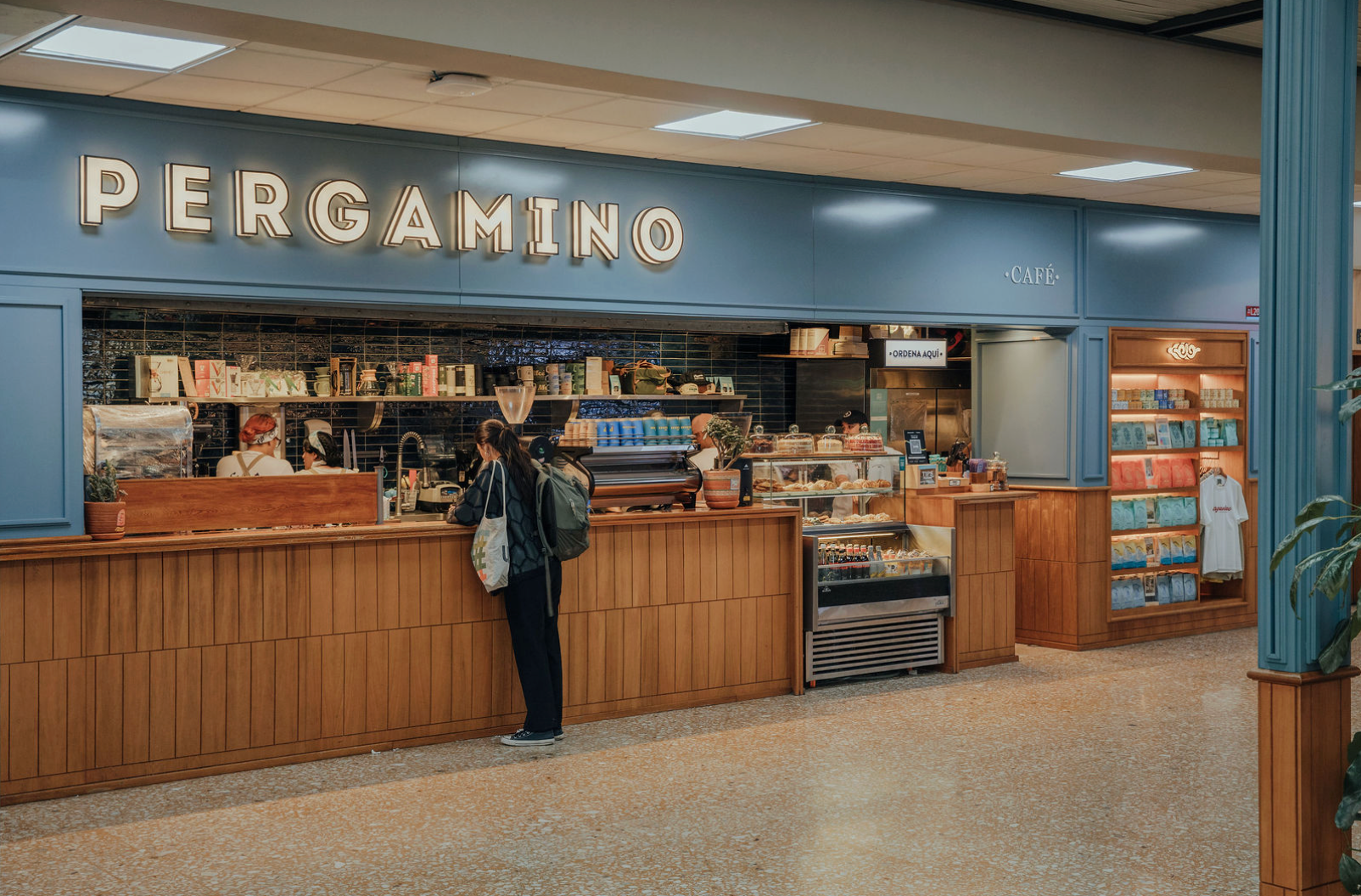 Nos encontramos en la terminal aérea en dos ubicaciones: como un oasis en el corredor principal del segundo piso, por la puerta 5 para aquellos que viajan, acompañan o que simplemente quieren pasar rápido por un café. Y en la terminal internacional, para que los que salen del país no se olviden de llevar una bolsa Pergamino.